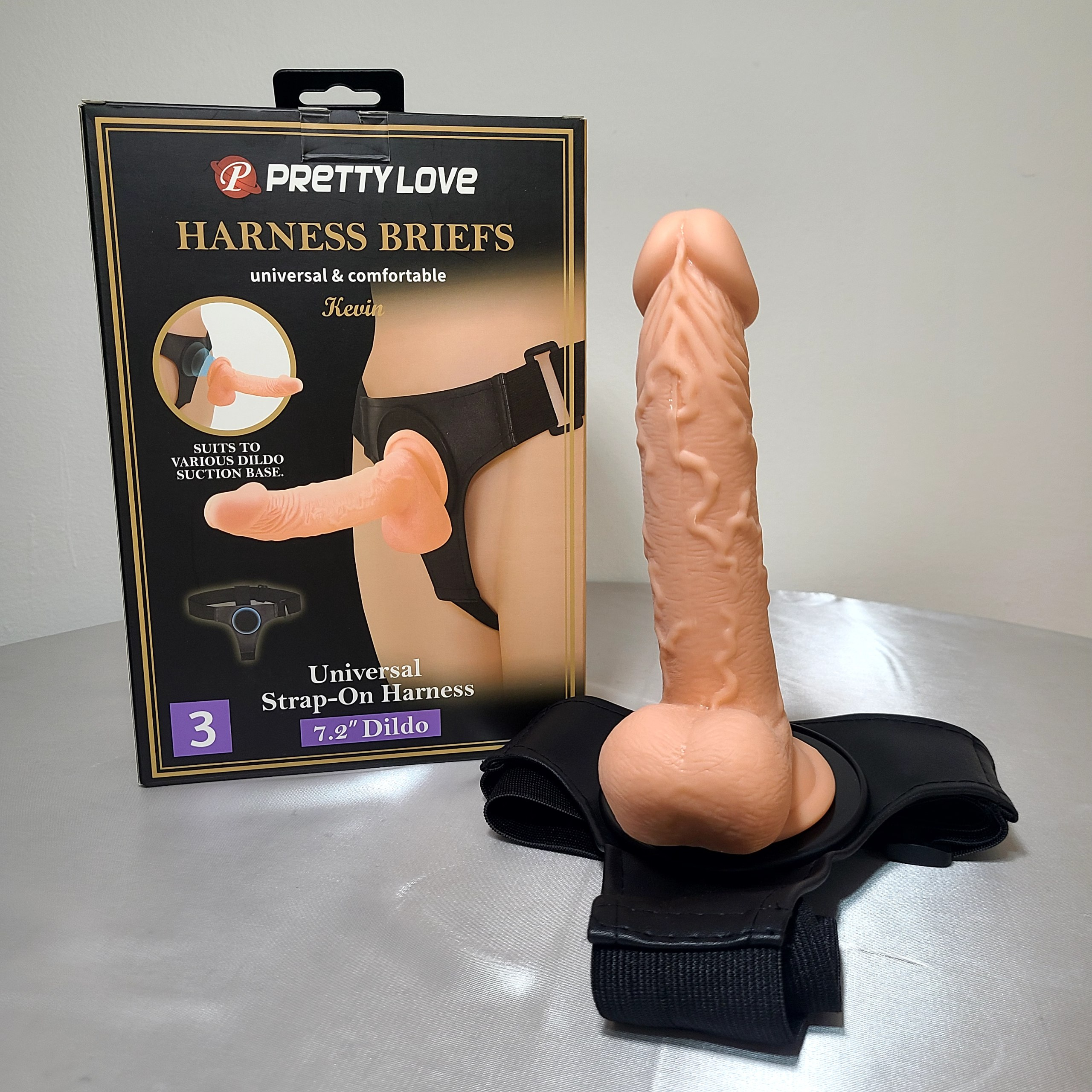 Arnés (Harness Briefs): Es un diseño de estilo minimalista en color negro, diseñado para ser ajustable y cómodo. El empaque indica que es un arnés «Universal», lo que sugiere que puede adaptarse a diferentes tipos de dildos con base de ventosa.