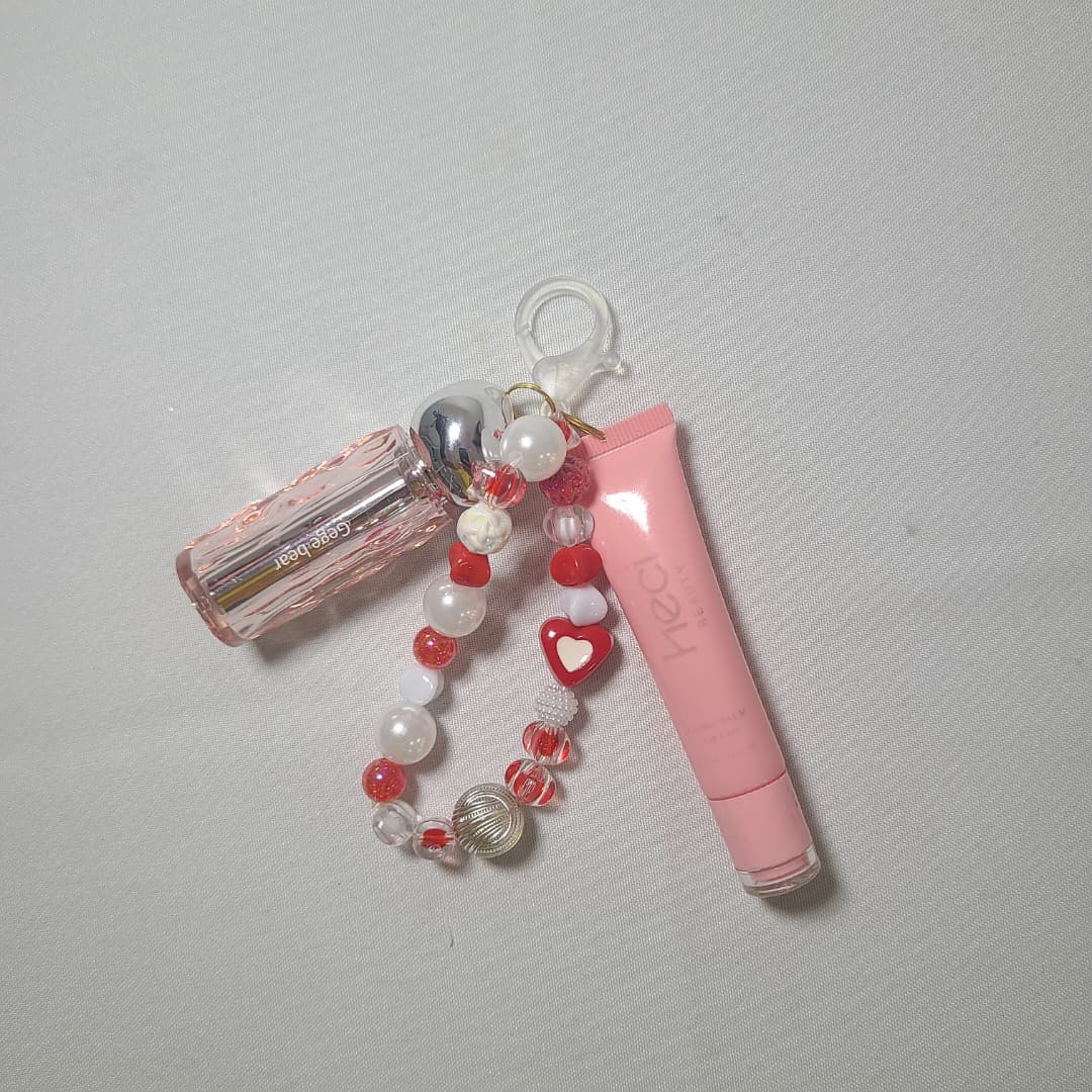Los artículos en la imagen son brillos labiales (lip gloss) de la popular marca de maquillaje china Gege Bear. Estos productos son conocidos por su estética «coquette» y funcional, ya que vienen integrados con un encantador llavero de cuentas, lo que los convierte tanto en un cosmético como en un accesorio de moda.