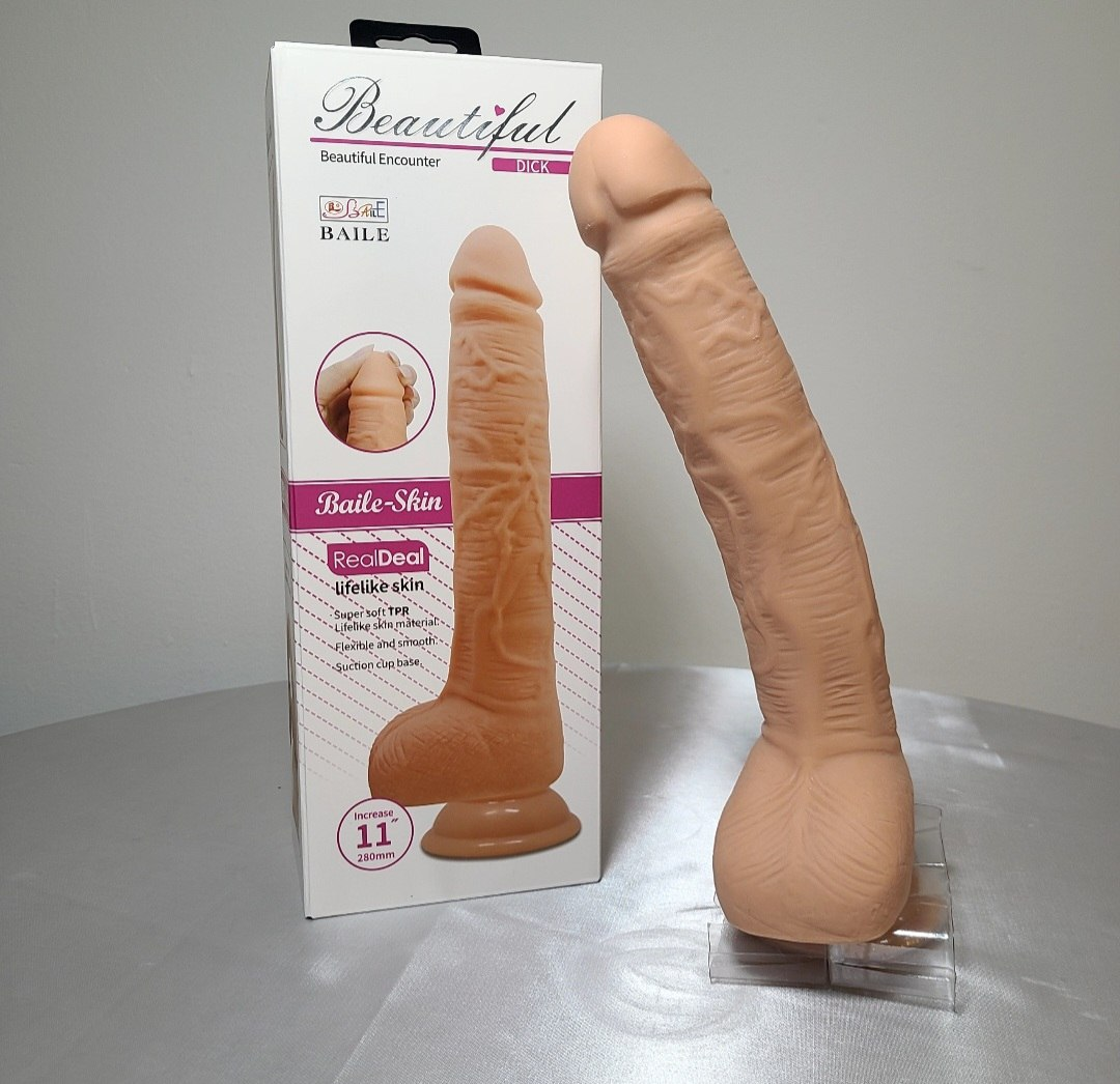Material: La caja indica que está hecho de TPR (Caucho Termoplástico), descrito como «Baile-Skin» para una sensación suave y realista. Base: Cuenta con una ventosa en la parte inferior, lo que permite fijarlo a superficies planas y lisas para un uso manos libres.