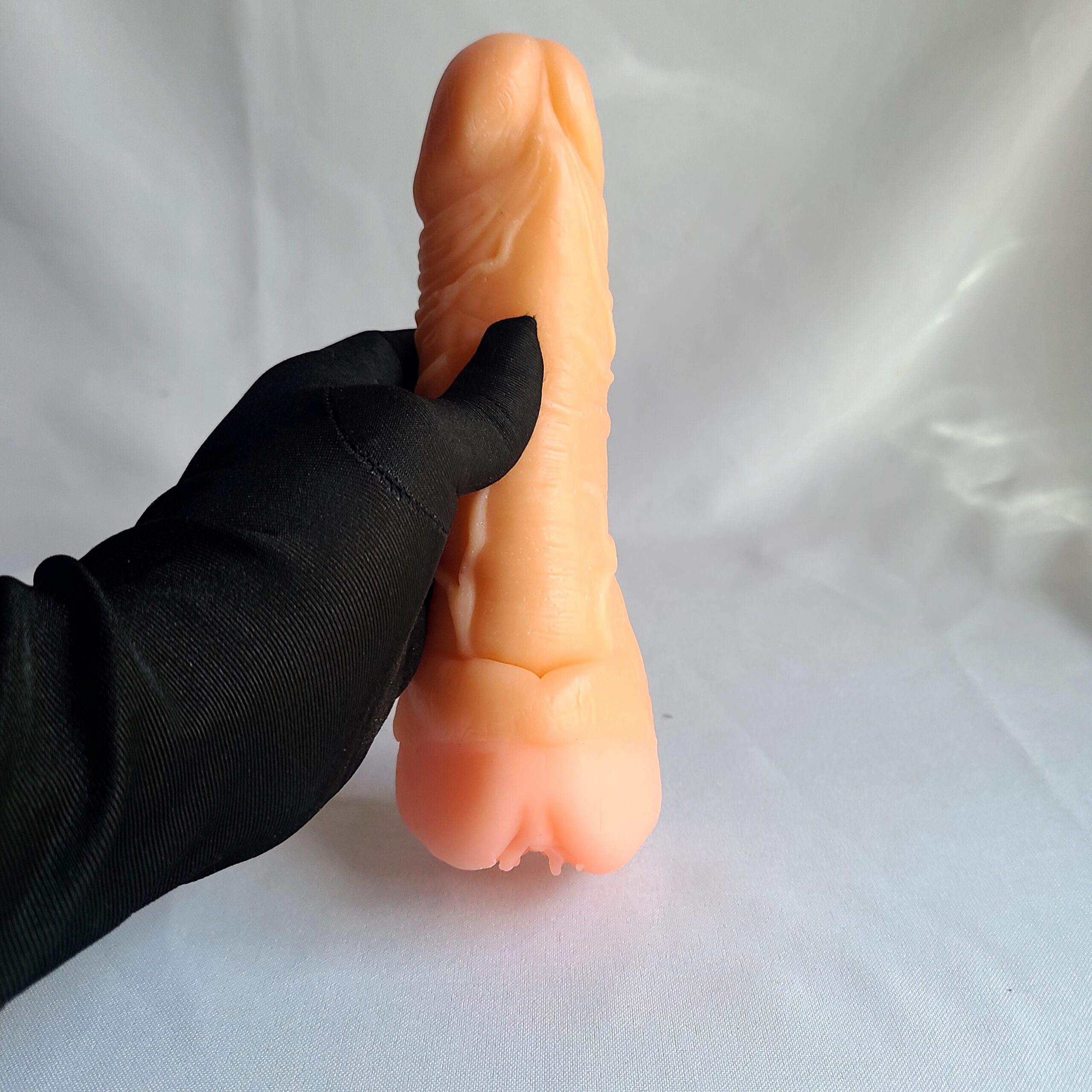 Funda en forma de dildo Con textura, muy suave Adaptable al pene También efecto masturbador